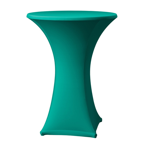 De hoes die bij deze receptietafel meegeleverd wordt bestaat uit 80% polyester en is 20% elastisch. Deze stretch tafelrok of hoes is van zware stofkwaliteit. Bovendien krijgt u bij het huren van deze receptietafel er nog een topcover bovenop meegeleverd in dezelfde kleur als deze van de stretchrok.